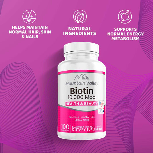 BIOTIN | 10.000 MCG | 200 SOFTGELS | MOUNTAIN VALLEY